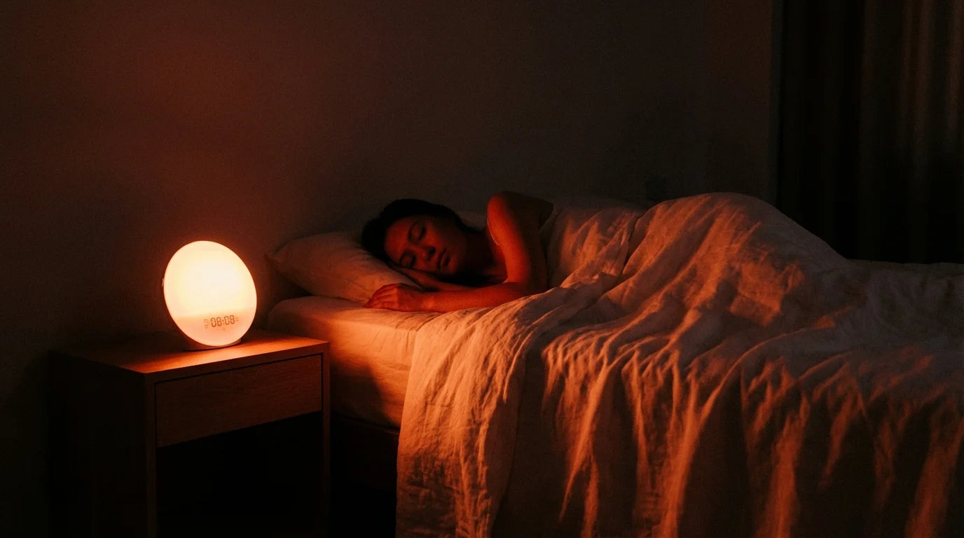 Un simulateur d’aube qui reproduit le lever du soleil. 30 minutes de lumière. Votre corps se réveille seul.